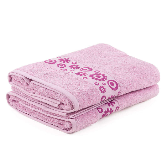Floral Combed Cotton Bath Towels – Ultra-Soft & Highly Absorbent | 100% Cotton Jacquard, 500GSM (2 Pack)