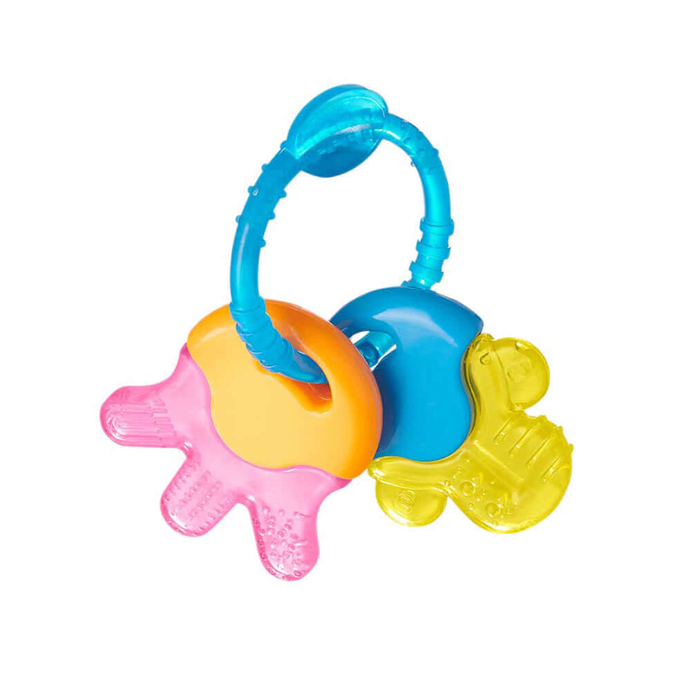 Designed to cool and soothe sore teething gums. The bright colours and different textures makes it the perfect distraction. Easy to attach to your pram or car seat. Suitable from 4 months onwards.