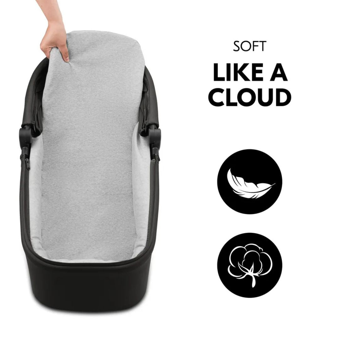 - Spacious carrycot with cotton mattress, soft sides, and foot cover