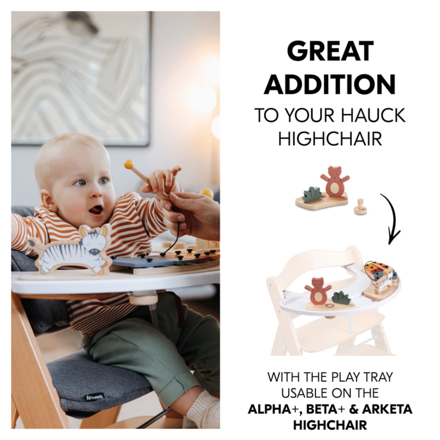 - Highchair Compatibility: Designed to perfectly attach to Hauck Alpha+, Beta+, and Arketa highchair Play Trays, providing safe and stable play.
