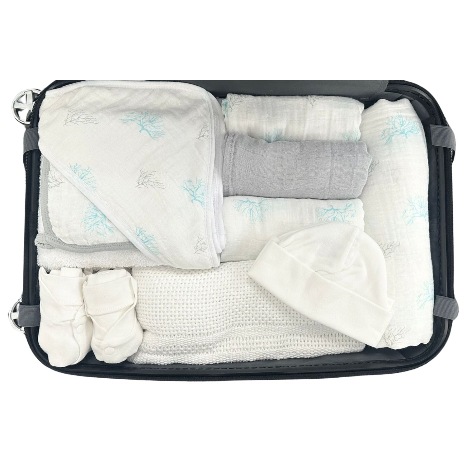 Introducing our gorgeous Hospital Bag Bundle, featuring all the essentials to welcome your little one into the world. Not only does it come with everything you need for your baby’s arrival, but it also includes the sleek Condotti Leggero Trolley, making it the perfect way to keep all your items organised and ready to go. The bundle is ideal for parents who want peace of mind, knowing they have everything together in one beautiful package.