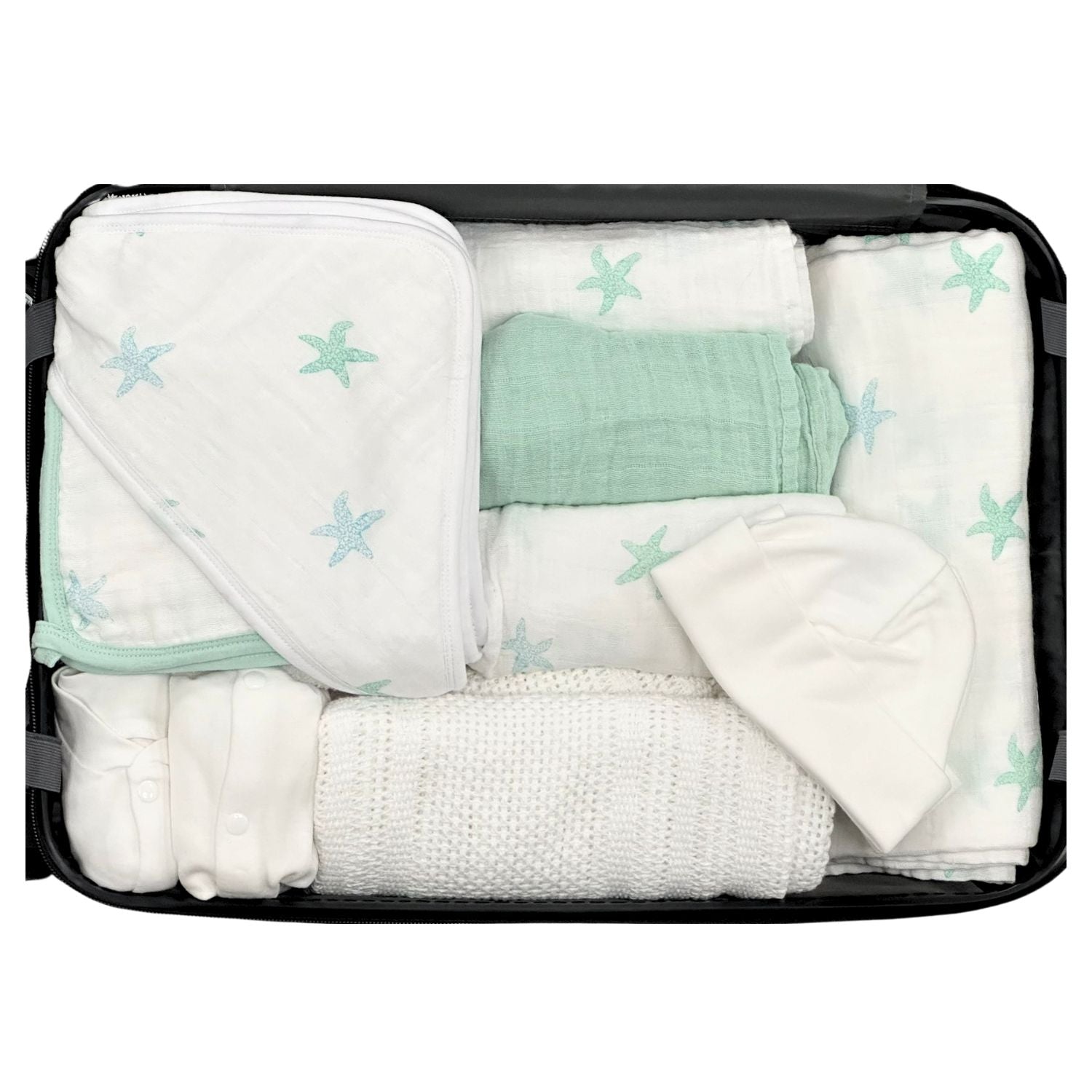 Available in two delightful designs—Starfish and Coral—this bundle is not just practical, but also a beautiful keepsake, making it the ultimate gift for new parents or a thoughtful treat for yourself. With everything in one place, you'll be fully prepared to welcome your little one, leaving you more time to enjoy those precious first moments.