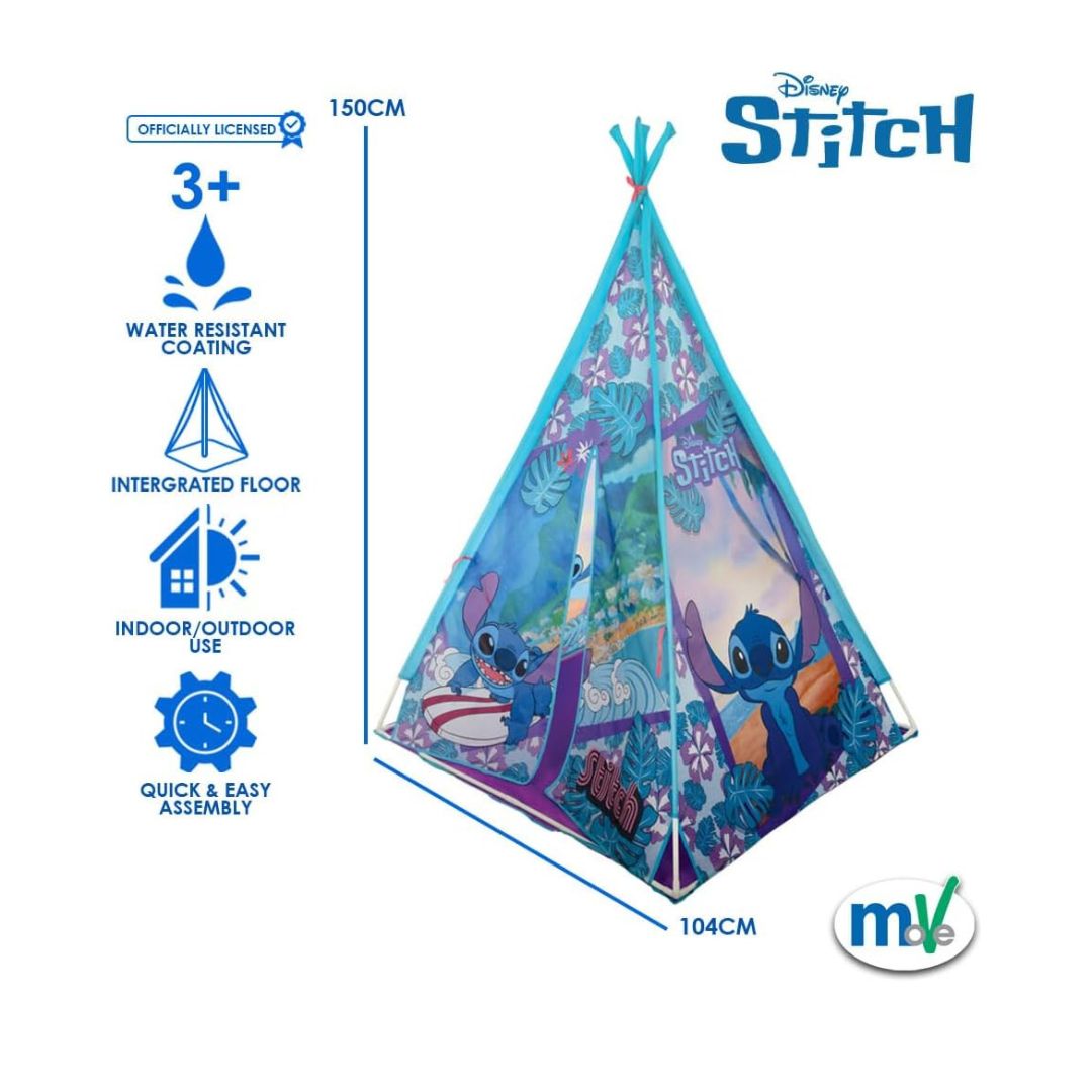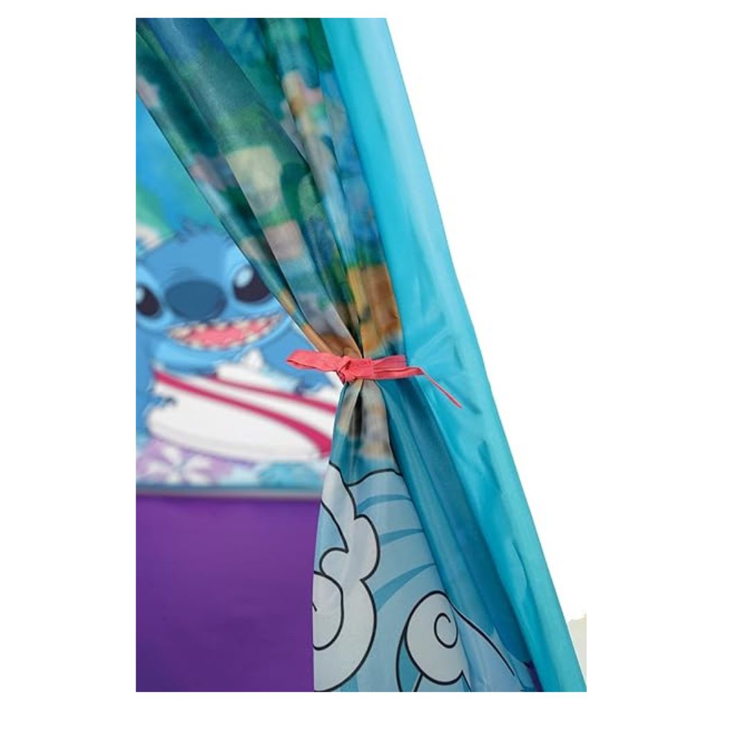 The Stitch Play Tent is perfect for sparking your child's imagination and confidence, offering a fun and cozy space for indoor and outdoor play. Officially licensed with Stitch, it features vibrant, full-color character graphics and tie-back doors that create a versatile play area. With its durable construction, water-resistant coating, and easy setup, this tent is perfect for playdates, sleepovers, or solo adventures. Suitable for ages 3+ and EN71 & CE UKCA certified for safety.