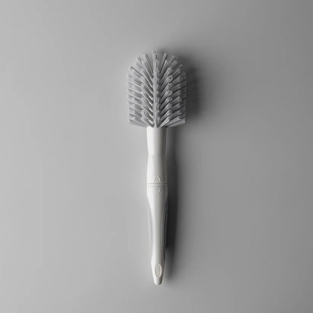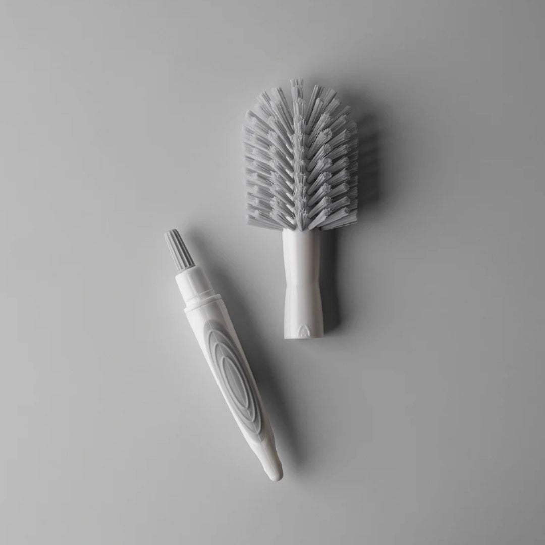 - 2-in-1 bottle and teat brush with soft, durable bristles and textured handle for hygienic cleaning.